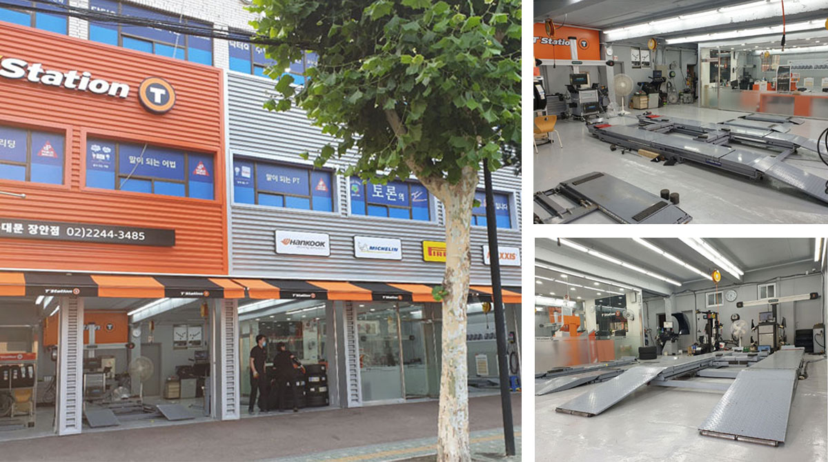 리프트 5대 동시 최대 5대 작업이 가능한 넓은 매장입니다.